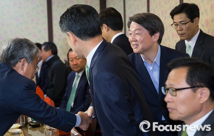 (서울=포커스뉴스) 안철수 국민의당 상임공동대표가 20일 오후 서울 마포 불교방송국 지하 1층의 한 음식점에서 열린 국민의당 소속 제19대 국회의원 오찬 간담회장에 참석해 의원들과 인사를 나누고 있다.