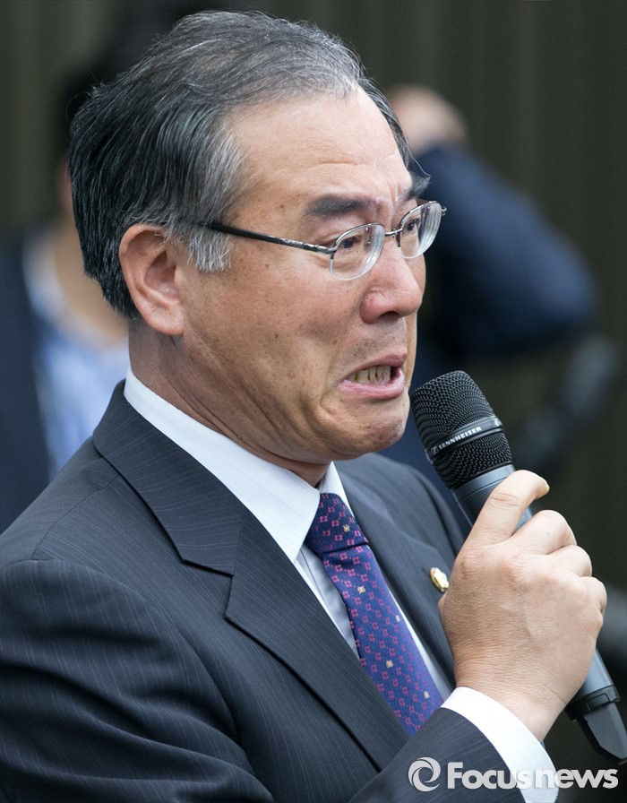 (서울=포커스뉴스) 20일 오전 서울 여의도 국회에서 열린 더불어민주당 20대 총선 당선자 대회에 참석한 전남 지역에서 당선한 이개호 당선인이 인사말 도중 울먹이고 있다.