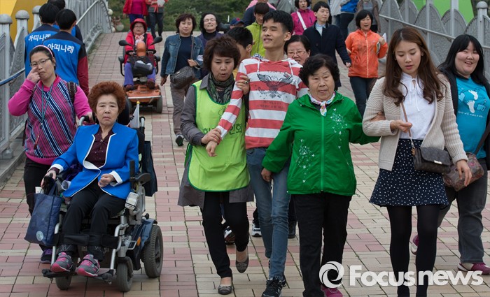 (청주=포커스뉴스) 20일 오후 충북 청주 올림픽국민생활관 일원에서 열린 제36회 장애인의 날 기념행사에서 참가자들이 거북이마라톤을 하고 있다.