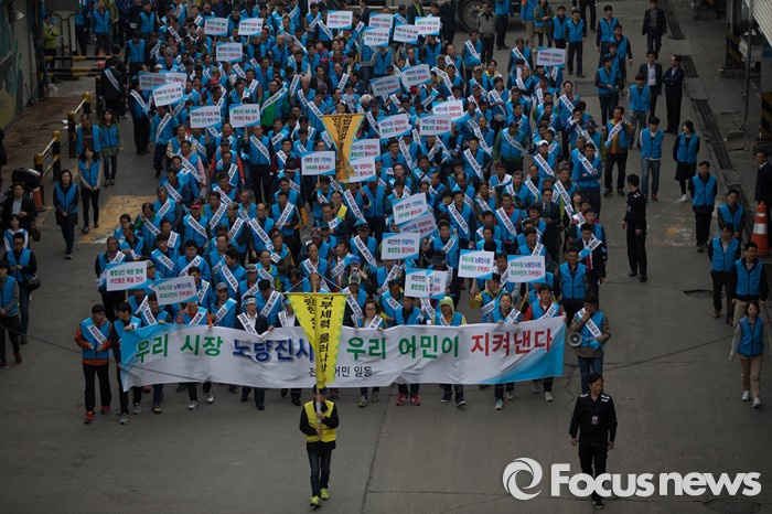 (서울=포커스뉴스) 노량진수산시장 현대화 사업으로 상인들과 수협 간 갈등이 고조되고 있는 20일 오후 서울 영등포구 노량진수산시장에서 전국 어민 2000여 명이 시장 정상화를 촉구하는 총궐기 대회를 열고 있다.