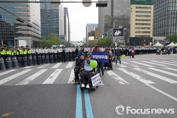 | △ 거리 행진하는 장애인들 |