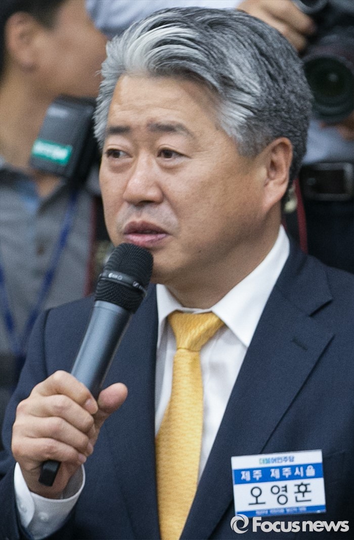 (서울=포커스뉴스) 20일 서울 여의도 국회에서 열린 더불어민주당 20대 총선 당선자 대회에 참석한 오영훈 당선인이 인사말을 하고 있다.