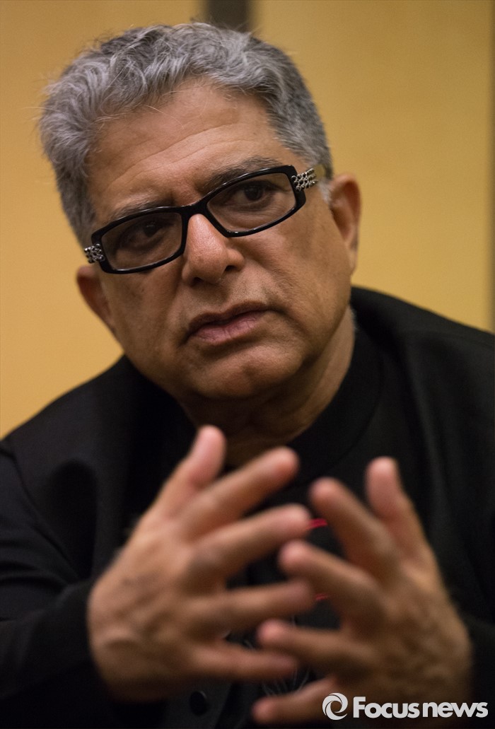 | △ 취재진 질문 답변하는 디팍 초프라 |