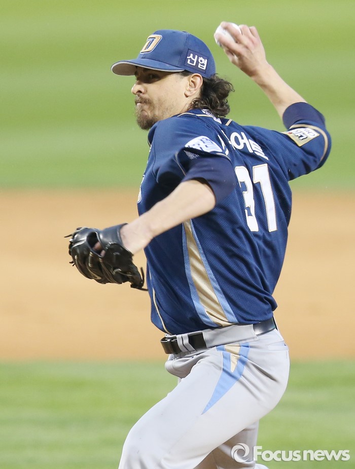 (서울=포커스뉴스) 20일 서울 잠실구장에서 열린 2016 프로야구 NC-LG 경기에서 1회말 NC 선발투수 스튜어트가 투구하고 있다.