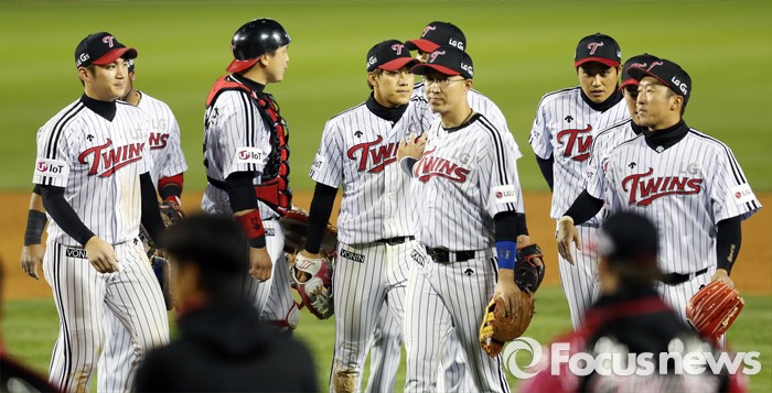 (서울=포커스뉴스) 20일 서울 잠실구장에서 열린 2016 프로야구 NC-LG 경기에서 NC를 6-3으로 물리친 후 LG 선수들이 밝은 표정으로 덕아웃을 향하고 있다.