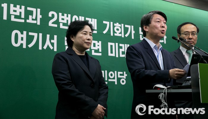 (서울=포커스뉴스) 안철수 국민의당 상임공동대표가 21일 오전 서울 마포구 당사에서 과학의 날 특별 브리핑을 하고 있다. 왼쪽부터 신용현 비례대표 당선인, 안 대표, 오세정 비례대표 당선인.