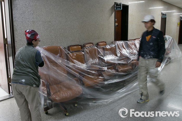 (서울=포커스뉴스) 21일 오전 서울 여의도 국회 본관에서 국민의당 대표실과 원내대표실 등 집무실 공사가 한창 진행되고 있다.