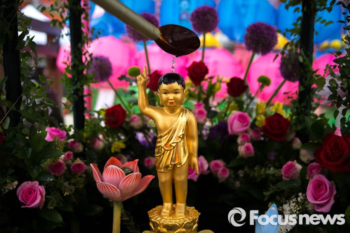 (서울=포커스뉴스) 한 불자가 21일 오전 서울 종로구 조계사에서 관불의식을 하고 있다. 관불은 불교의식으로 탄생불의 형상에 물을 부어 씻겨 자신의 마음에 쌓인 죄와 번뇌를 맑고 깨끗하게 만들어 복을 누리게 된다고 알려진 의식이다.