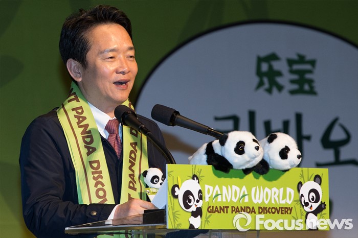 (용인=포커스뉴스) 21일 오전 경기도 용인시 에버랜드에서 열린 '판다월드 개관식'에서 남경필 경기도지사가 축사를 하고 있다.
