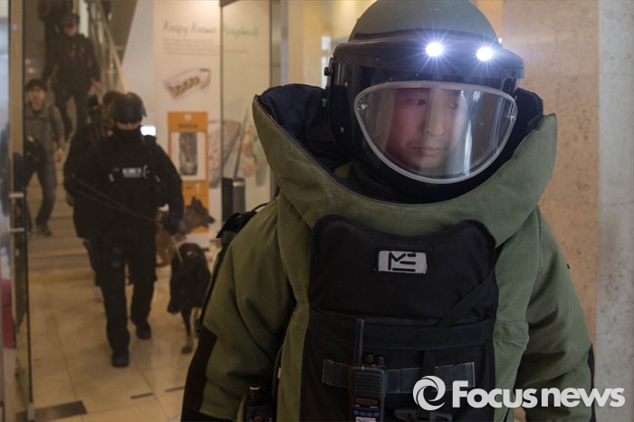 (서울=포커스뉴스) 21일 오후 서울 중구 명동예술극장에서 경찰특공대, 중부소방서, 218연대 등이 공연장 대테러훈련을 실시하고 있다.