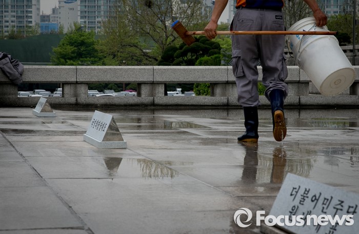 (서울=포커스뉴스) 21일 오전 서울 여의도 국회 본청 앞 주차장에 국민의당 지도부의 주차공간을 위한 명패가 설치되어 있다.