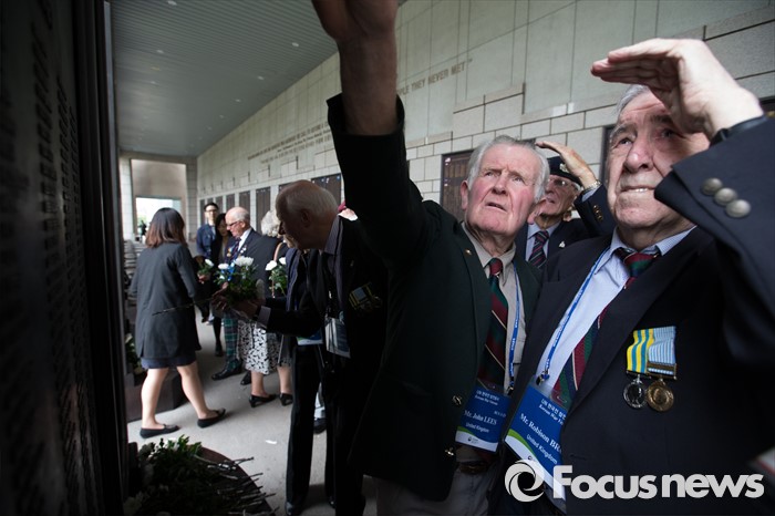 (서울=포커스뉴스) 임진강 및 가평전투 65주년을 맞은 21일 오후 서울 용산구 전쟁기념관에 6.25전쟁에 참전했던 영연방(영국, 캐나다, 호주, 뉴질랜드) 참전용사들이 방문해 유엔(UN) 참전국 전사자 명비를 보고 있다.