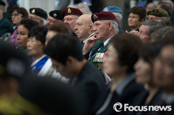 (서울=포커스뉴스) 21일 오후 서울 용산구 전쟁기념관에서 열린 6.25 전쟁영웅 선정패 수여식에서 참전용사들이 참석하고 있다.