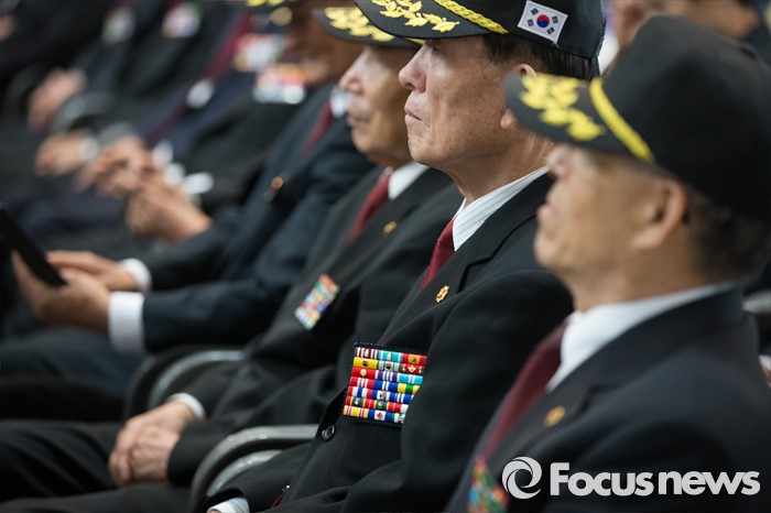 (서울=포커스뉴스) 21일 오후 서울 용산구 전쟁기념관에서 열린 6.25 전쟁영웅 선정패 수여식에서 참전용사들이 참석하고 있다.