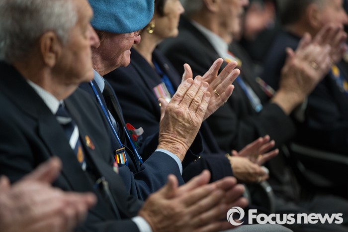 (서울=포커스뉴스) 21일 오후 서울 용산구 전쟁기념관에서 열린 6.25 전쟁영웅 선정패 수여식에서 참전용사들이 박수를 치고 있다.