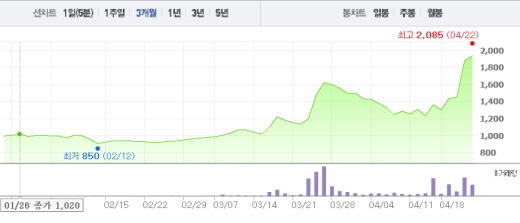 IT전문기업인 대신정보통신은 22일 오전 9시47분 현재 전일 대비 1.33%(25원) 상승한 1910원에 거래되고 있다. 대신정보통신은 19일 10.34%, 20일 0.69%, 21일 무려 가격제한폭인 30%까지 오르는 등 상승 곡선을 그리고 있다.