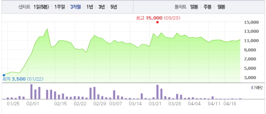 뇌염백신과 인플루엔자 백신의 생산원료를 공급하는 오리엔트 바이오도 2거래일 연속 보합세에서 상승세로 바뀌었다. 오리엔트 바이오는 2.67%(45원) 오른 1730원에 거래되고 있다.