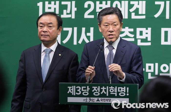 (서울=포커스뉴스) 주승용 국민의당 원내대표(오른쪽)와 장병완 정책위의장이 22일 서울 마포 당사 브리핑룸에서 19대 국회 쟁점법안을 발표하고 있다.