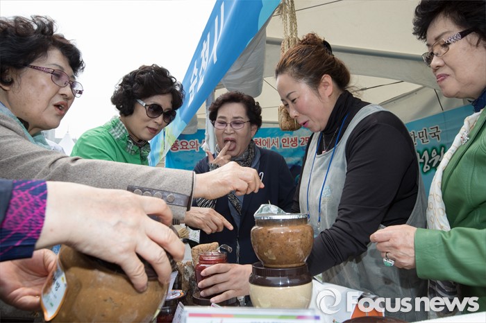 (서울=포커스뉴스) 22일 오전 서울 광화문 광장에서 열린 '2016 광주·전남 귀농귀촌 박람회' 순천시 부스에서 참석자들이 된장, 고추장을 비롯한 다양한 상품들을 시식하고 있다.
