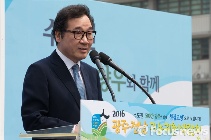 (서울=포커스뉴스) 22일 오전 서울 광화문 광장에서 열린 '2016 광주·전남 귀농귀촌 박람회'에서 이낙연 전남도지사가 축사를 하고 있다.