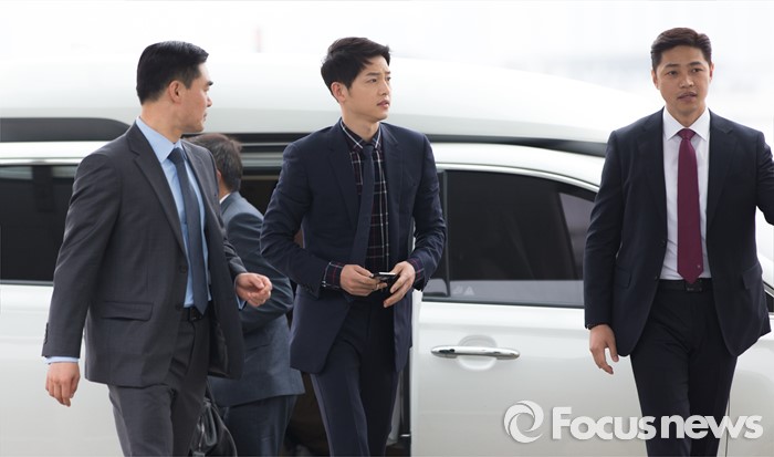 (인천공항=포커스뉴스) 배우 송중기가 디올옴므 16겨울 컬렉션 라이브 쇼에 참석하기 위해 22일 오후 인천국제공항으로 들어서고 있다.