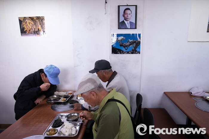 (서울=포커스뉴스) 22일 오전 서울 종로구에 위치한 어버이연합 사무실에서 전경련 자금지원 의혹에 휩싸인 어버이연합의 기자회견이 진행되고 있는 가운데 어버이연합 관계자들이 점심 식사를 하고 있다.