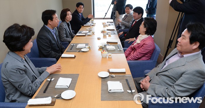 (서울=포커스뉴스) 새누리당 20대 총선 서울 지역 당선자들이 22일 오후 서울 여의도 한 일식집에서 오찬 모임을 갖고 대화하고 있다. 왼쪽부터 시계 방향으로 이혜훈, 김성태, 나경원, 오신환, 지상욱, 이종구, 이은재, 정양석 당선인.