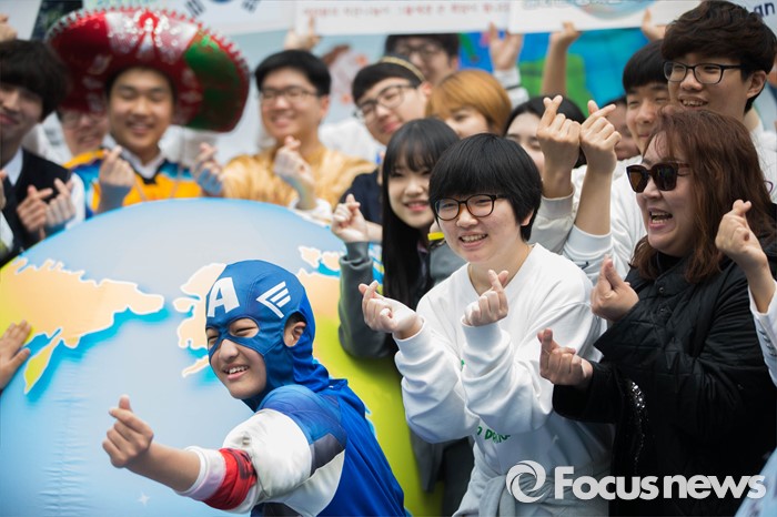 (서울=포커스뉴스) 22일 서울 종로구 광화문시민열린마당에서 지구시민운동연합 회원들이 제46회 지구의 날을 기념해 '나는 지구시민입니다'라는 주제로 플래시몹을 하고 있다.