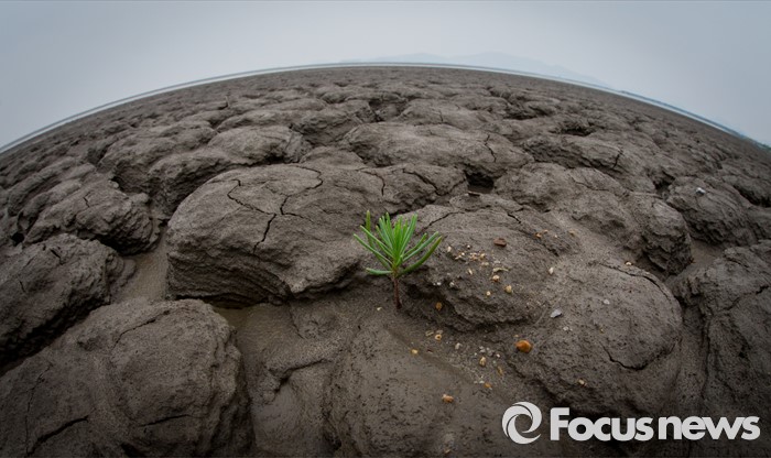 (인천=포커스뉴스) 마흔 여섯번째 지구의 날을 맞은 22일 오전 경기 인천시 영종대교 아래 갯벌을 매운 간척지 운염도의 모습. 메마르고 갈라진 땅 위로 생명의 싹이 푸르른 빛을 발하고 있다. 지구의 허파로 불리는 갯벌은 생태계 면적의 0.3%에 불과하지만 자연의 정화조로서 생태적 가치는 숲의 10배, 농경지의 100배에 달한다. 간척과 매립 등 인간의 욕심으로 서서히 사라져가는 갯벌, 어머니 지구의 준엄한 경고를 새겨들을 때이다.