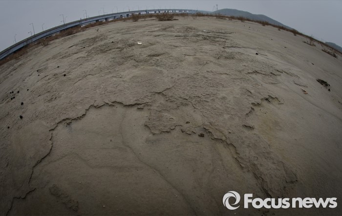 (인천=포커스뉴스) 마흔 여섯번째 지구의 날을 맞은 22일 오전 경기 인천시 영종대교 아래 갯벌을 매운 간척지 운염도의 모습. 메마른 땅이 대륙을 품은 듯 하다. 지구의 허파로 불리는 갯벌은 생태계 면적의 0.3%에 불과하지만 자연의 정화조로서 생태적 가치는 숲의 10배, 농경지의 100배에 달한다. 간척과 매립 등 인간의 욕심으로 서서히 사라져가는 갯벌, 어머니 지구의 준엄한 경고를 새겨들을 때이다.