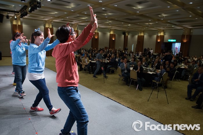 (서울=포커스뉴스) 22일 오후 서울 용산구 백범기념관에서 열린 사회복지사협의회 창립 30주년 기념행사에서 사회복지사들이 춤을 추고 있다.