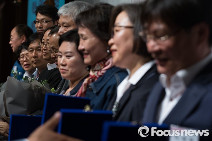 (서울=포커스뉴스) 22일 오후 서울 용산구 백범기념관에서 열린 사회복지사협의회 창립 30주년 기념행사에서 장재구 사회복지사협회 회장이 공로패를 사회복지사들에게 전달하고 있다.