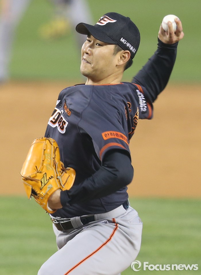 (서울=포커스뉴스) 22일 서울 잠실구장에서 열린 2016 프로야구 한화-두산 경기에서 1회말 한화 선발투수 송은범이 투구하고 있다