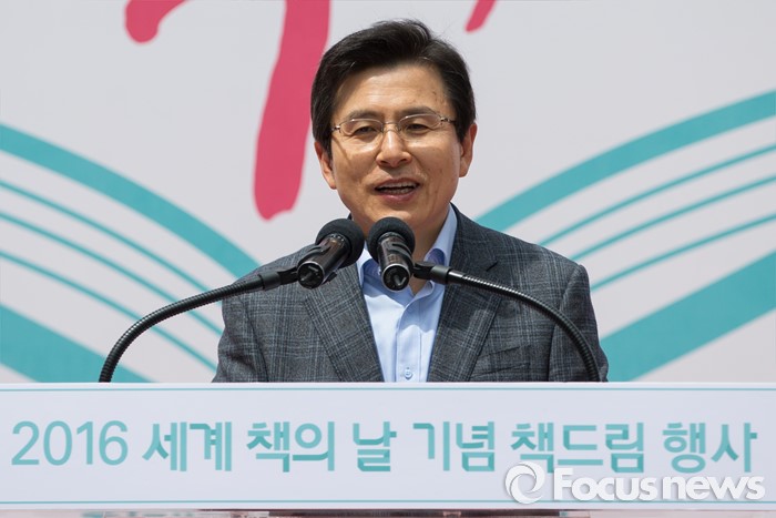 (서울=포커스뉴스)유네스코가 1995년 제정한 ‘세계 책과 저작권의 날’인 23일 오전 서울 중구 청계광장에서 열린 2016 세계 책의 날 기념 책드림 행사 '두근두근 책 속으로'에서 황교안 국무총리가 축사를 하고 있다.