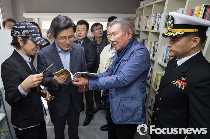 | △ 병영독서카페에서 책 보는 황교안 |