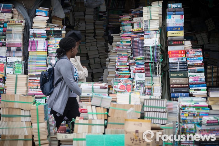 (서울=포커스뉴스) 세계 책의 날인 23일 오전 서울 중구 청계6가 평화시장 헌책방 골목에서 외국인 관광객들이 헌책 사이를 지나가고 있다. 청계 6가 헌책방거리는 1970년대 점포수가 200여 개에 달할 정도로 성황이었지만 현재는 25곳 정도 밖에 남아 있지 않다.