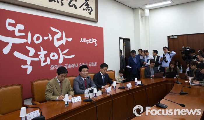 (서울=포커스뉴스) (왼쪽부터) 이종걸 더민주, 원유철 새누리, 주승용 국민의당 원내대표가 24일 오후 서울 여의도 국회에서 3당 원내대표 회담을 진행하고 있다.