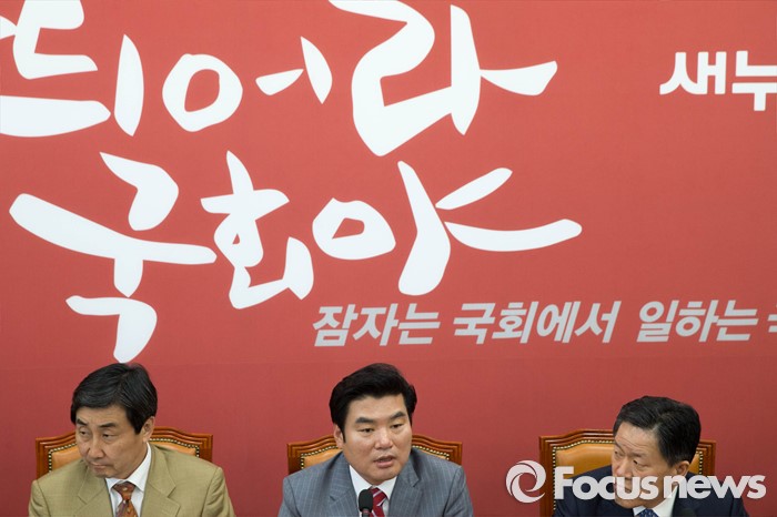 (서울=포커스뉴스) (왼쪽 세번째부터) 더민주 이종걸, 새누리당 원유철, 국민의당 주승용 원내대표가 24일 오후 서울 여의도 국회에서 열린 3당 원내대표 회담에 참석, 취재진을 향해 포즈를 취하고 있다.