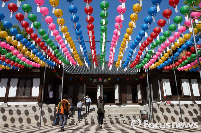 (서울=포커스뉴스) 24일 오후 서울 성북구 길상사에 부처님오신날을 앞두고 연등이 걸려있다.