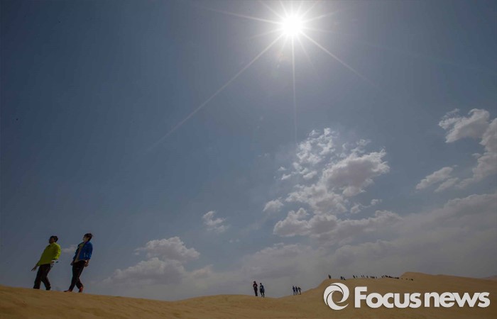 (다라더치/중국=포커스뉴스) 24일 오전 중국 내몽고 다라더치 쿠부치사막에서 한ㆍ중ㆍ일 대학생들로 구성된 2016 미래숲 15기 녹색봉사단원들이 사막트래킹을 하고 있다. 미래숲 녹색봉사단은 이번 봉사활동을 통해 황폐화된 사막에 나무 심기 및 각국 청년들과 우호를 증진을 위한 교류 활동을 전개할 예정이다.