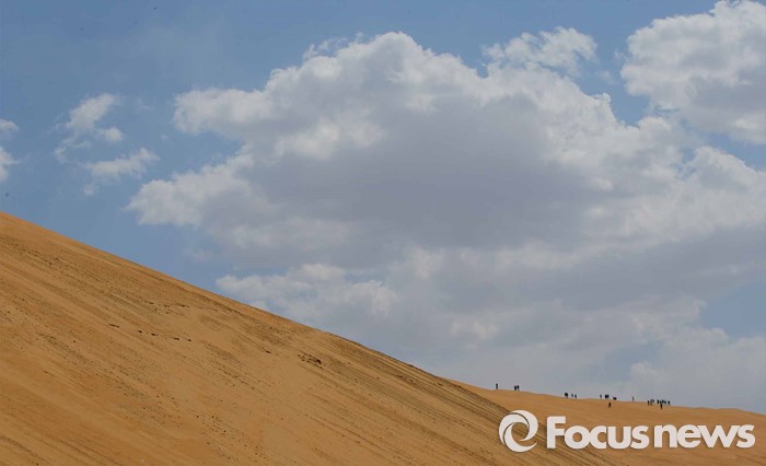 (다라더치/중국=포커스뉴스) 24일 오전 중국 내몽고 다라더치 쿠부치사막에서 한ㆍ중ㆍ일 대학생들로 구성된 2016 미래숲 15기 녹색봉사단원들이 사막트래킹을 하고 있다. 미래숲 녹색봉사단은 이번 봉사활동을 통해 황폐화된 사막에 나무 심기 및 각국 청년들과 우호를 증진을 위한 교류 활동을 전개할 예정이다.