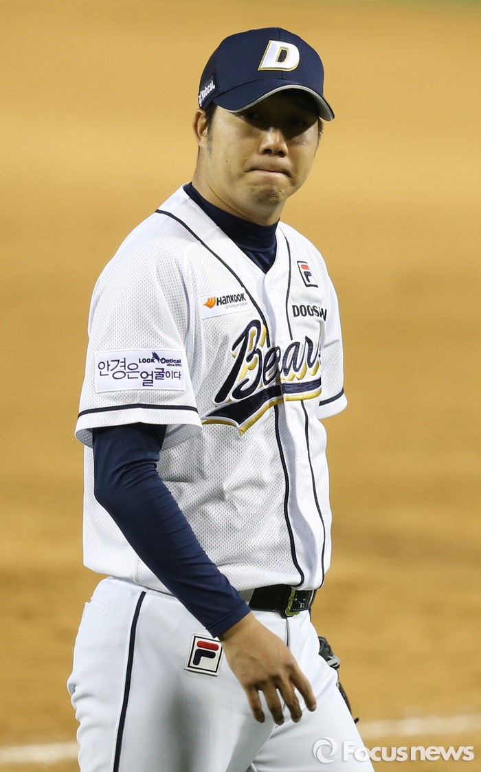 (서울=포커스뉴스) 24일 서울 잠실구장에서 열린 2016 프로야구 한화-두산 경기에서 두산 선발투수 장원준이 7회 1사후 주자를 내보내고 마운드를 내려가고 있다.
