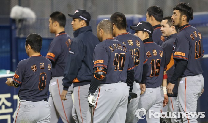 (서울=포커스뉴스) 24일 서울 잠실구장에서 열린 2016 프로야구 한화-두산 경기에서 두산에 3연패한 한화 선수들이 경기를 마치고 씁쓸한 발걸음을 하고 있다.