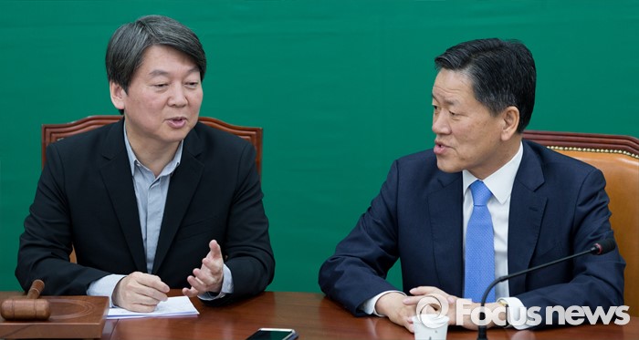 (서울=포커스뉴스) 안철수(왼쪽) 국민의당 상임공동대표가 25일 오전 서울 여의도 국회에서 최고위원회의에 참석해 주승용 원내대표와 이야기를 나누고 있다.