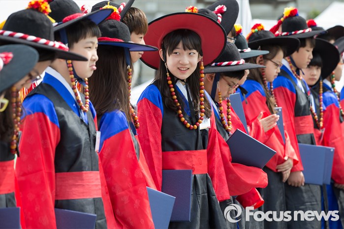 (서울=포커스뉴스) 28일 오전 서울 중구 남산골한옥마을에서 열린 '충무공 탄생 471주년 기념 다례식'에서 소년소녀 이순신으로 선택된 초등학생들이 표창장을 받고 잠시 대기하고 있다.