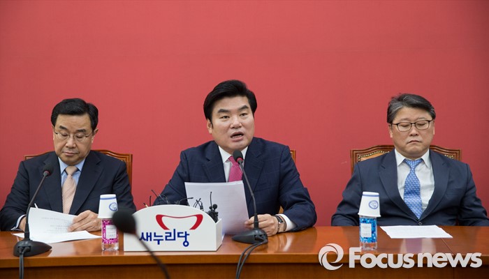 (서울=포커스뉴스) 원유철(가운데) 새누리당 대표최고위원 권한대행이 2일 오후 서울 여의도 국회에서 열린 원내대책회의에 참석해, 모두발언하고 있다. 왼쪽부터 김정훈 정책위의장, 원 원내대표, 조원진 원내수석부대표.
