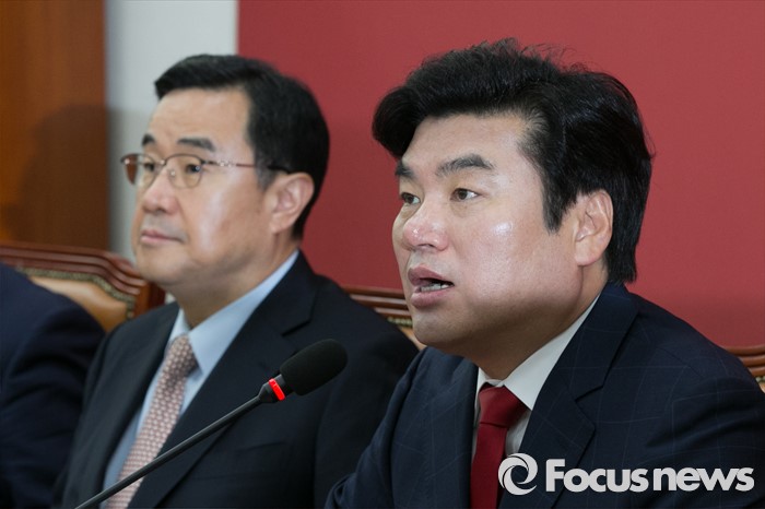 (서울=포커스뉴스) 원유철(오른쪽) 새누리당 대표최고위원 권한대행이 29일 오전 서울 여의도 국회에서 열린 원내대책회의에 참석해, 모두발언하고 있다.