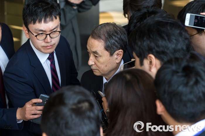 (서울=포커스뉴스) 수 많은 목숨을 앗아간 가습기 살균제가 만들어졌을 당시 옥시 최고경영자를 지낸 신현우 전 옥시 대표가 26일 오전 서울 서초구 서울중앙지검에 피의자 신분으로 출석 하며 취재진에게 질문을 받고 있다.