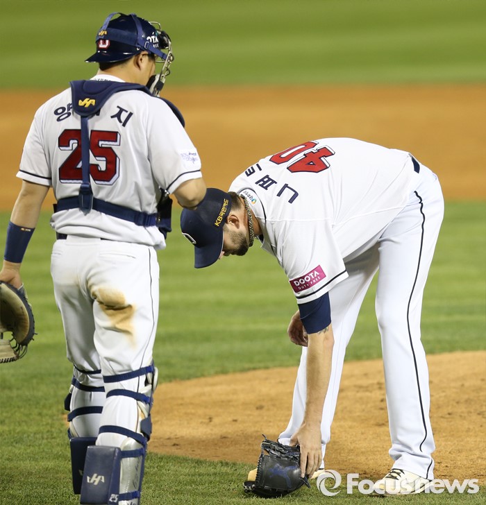 | △ 니퍼트를 안정 시키는 양의지 |