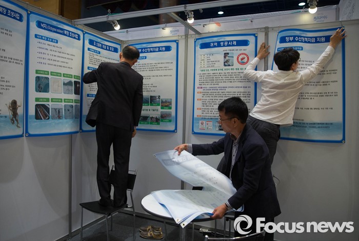 (서울=포커스뉴스) 28일 오전 서울 삼성동 코엑스에서 열린 2016 귀어귀촌 박람회장에서 전시 관계자들이 부스 설치를 하고 있다.